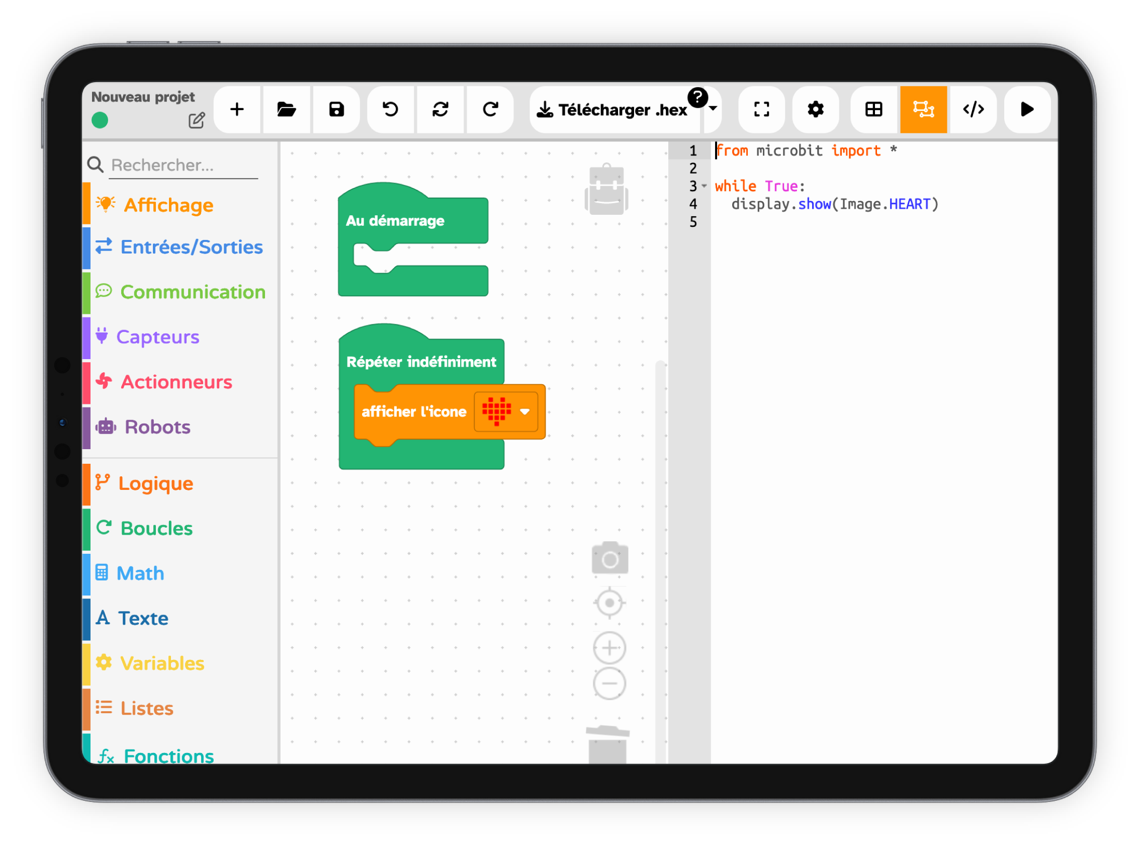 Les interfaces s’adaptent au niveau de l’élève en permettant une traduction des blocs visuels en Python, ce qui constitue une innovation pédagogique importante pour la transition du collège vers le lycée.